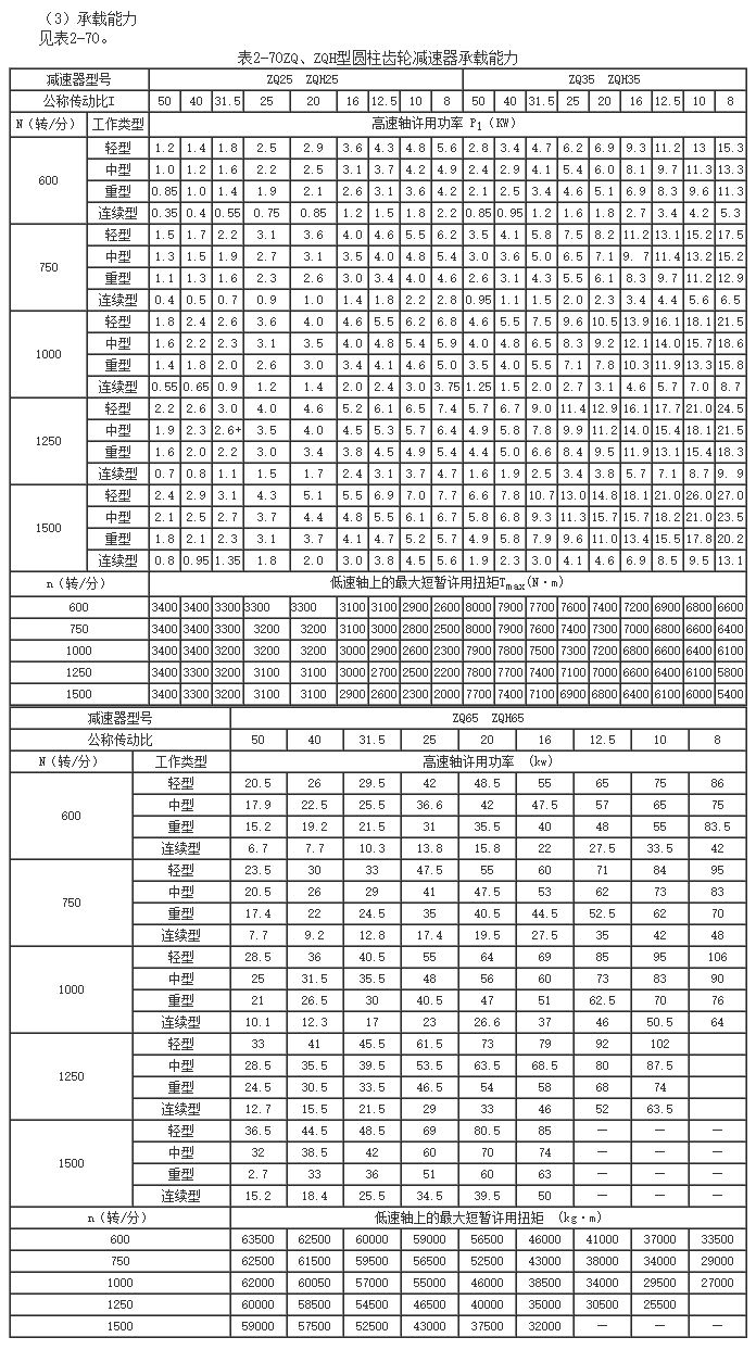 > ZQ、ZQH型圓柱齒輪減速器承載能力(JB1585-75)