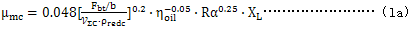 沿齧合線的平均摩擦因數μmc,可由測量[1]得到與由公式(1)估計出。雖然,局部磨擦因數在節點C接近於零 ,當引入公式(1)時,其平均值可用節點的參數與油溫Θoil時油的黏度ηoil大緻得出。